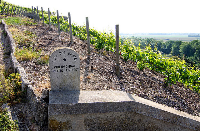 Clos de Goisses – Premier Cru net buiten Mareuil sur Aÿ in de Montagnes, met een 30°–45° best steil maar dat wist u al omdat gois of goisse dat betekent in lokaal dialect. Eerlijk gezegd vind ik ter plekke het ommuurde karakter best ‘meevallen’ (door de helling?), het ziet er niet echt zwaar besloten uit. De eerste ooit als echte designated Clos, 1935 door Philipponat begonnen. Die er van de plotjes Les Cintres (in twee deeltjes; Les Petit Cintres en jawel Les Grands Cintres) al of niet met een paar extra – zie hieronder, Le Léon (overigens Grand, qua Cru, en zuiver Pinot Noir) en La Rémissonne de cuvées Clos des Goisses, Les Cintres en Petits Cintres, respectievelijk Le Léon en La Rémissionne, van maakt. Vreemd genoeg staat er op deze site een portret met drie andere namen/plotjes ..‽ aha, gevonden: La Dure is in ieder geval het Goisses-onderdeel van langs de D111 / Rue de Châlons direct als je het dorp uitrijdt; Collet iets verderop (ook al zo’n héél steil stukje) en Les Jolivets dan nog weer een eindje verderop (langs de hekken om de landbouwkundig medewerkers uit alle EU-windstreken(?) al of niet in vaste of oproep-dienst te beschermen tegen val, schat ik). Waar is in dit verhaal de werkelijk bestaande L’Écluse van gewoon online zichtbaar..? En Croix des Goisses idem. Onderdelen van de grotere Goisses, kennelijk volgens de stenen, maar niet het noemen waard zoals de Cintres? Of Le Chalet. Raadsels. En oh kijk; er is er naar melding van Philipponat zelf nog een: de Bout des Goisses. Hopelijk komen we ook nog eens achter de andere namen van de veertien subplotjes van de grotere Clos des Goisses-aanduiding. Wat overigens nauwelijks een Clos is/zijn want met weinig muur zeker niet zo hoog als de definitie zou vragen; de muur langs de weg beneden is meer om de aarde (en landbouwkundig medewerkers?) tegen te houden, de bovenste stukjes zijn niet goisse maar op het relatief vlakke af, en sowieso kunnen we het wegens de verschillen beter aanduiden als verzameling contrées, dus. Al zijn de Cintres wél flink bemuurd (cintre = boog weet u nog van uw middelbare-schoollesjes nee ik ook niet – de muren waren boogvormig terwijl cintre tegenwoordig gewoon kleerhangertje betekent. Rare jongens die Galliërs…). Nevermind; legendarisch spul.