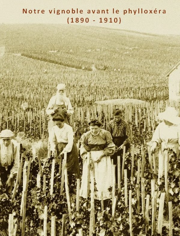 Nota bene, dat op stokken omhoog groeien, dat was (kennelijk) pre-phylloxera niet-abnormaal of wellicht juist gewoon… Zie bijvoorbeeld het photographiebeeld van Barnaut – en overigens dat aldaar het pre-tijdperk tot 1910 liep ..! Dus het behoud voor Les Vielles Vignes past daarbij.