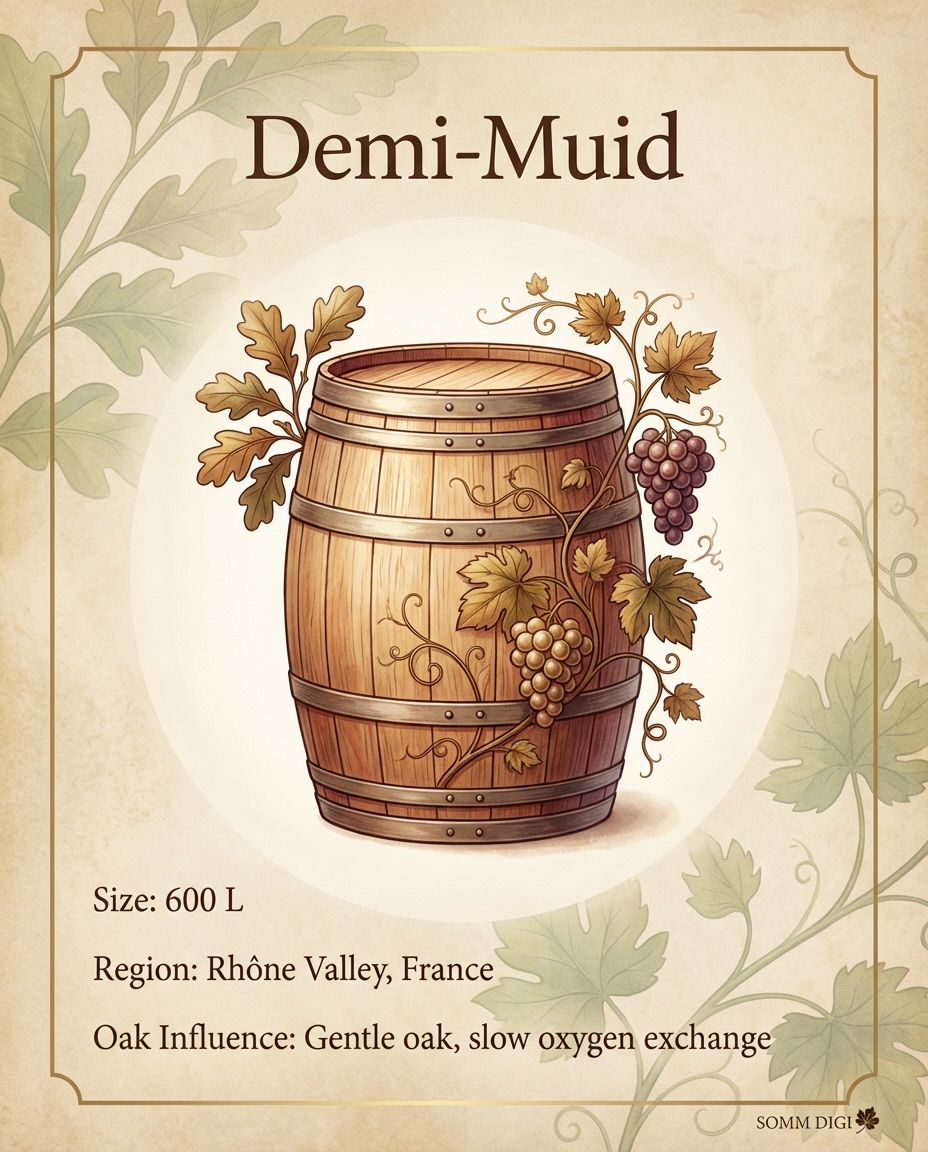 Een muid op z’n Frans varieert; 260ℓ in de Aisne, 608ℓ rond Montpellier, en 685ℓ in de Hérault; best een verschil en dat zijn nog de ‘gewone’ formaten… En dan is een demi-muid – zowat hetzelfde op zo’n 600-685ℓ, wat maakt het ook uit ..? Waarnaast een foudre (het Nederlandse ‘foeder’ vind ik een lelijk woord, Duits Fuder kan dan nog) van 20-120hectoliter dan weer wat anders is… En dan hebben we nog de feuillette van 114ℓ, een quartaut van 57ℓ – ik meen die term overigens niet vaak te horen –, een fût in het algemeen van 30 tot 350ℓ. Foudres vallen overigens in de categorie ‘cuves’, waarin eigenlijk alles wat groter is dan een eiken vat (ook) wordt gerekend.