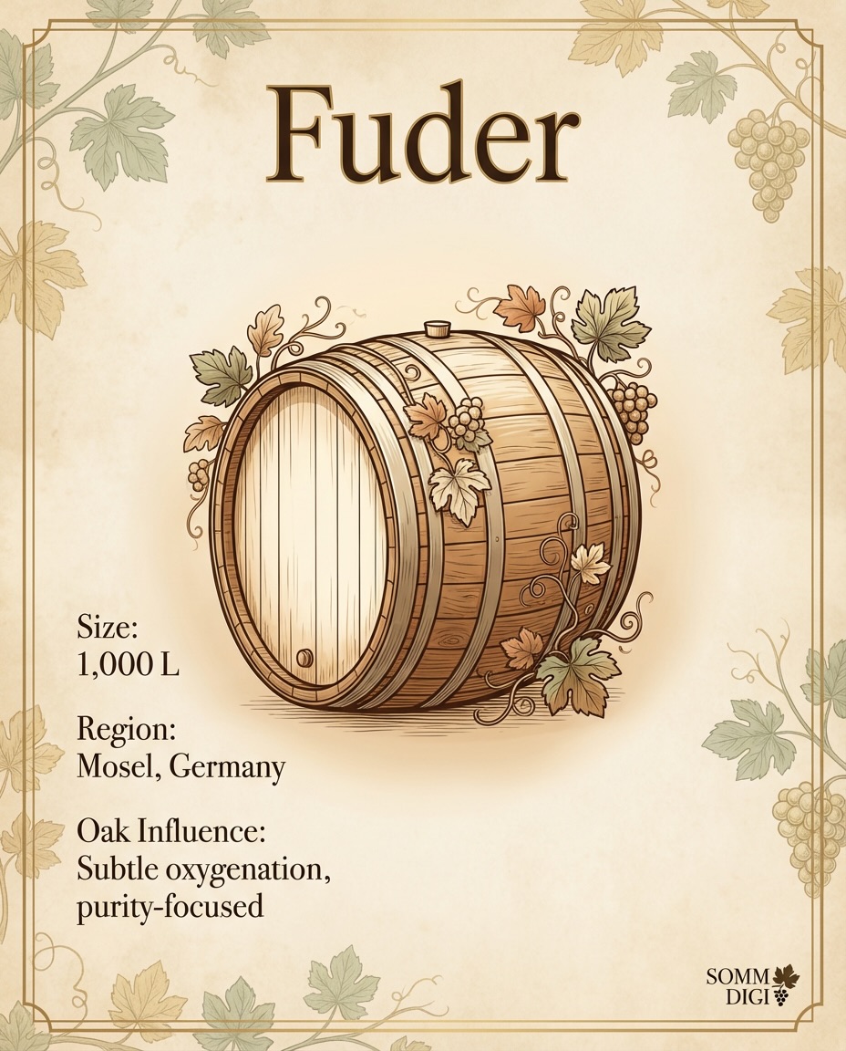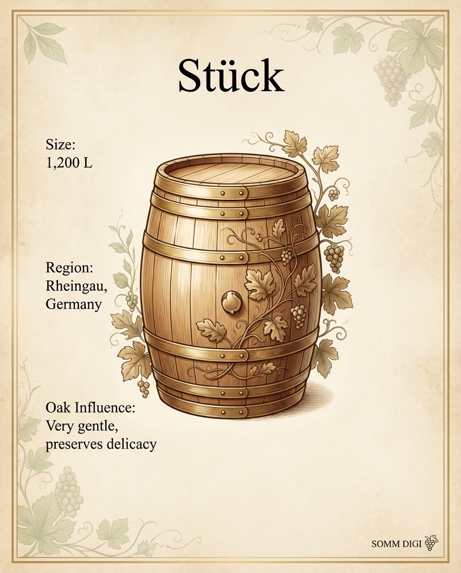Waar we in Duitsland dan nog het Halbstück tegenkomen, ad 600ℓ inderdaad de helft van een Stück ad 1000-1200ℓ waarnaast een Doppelstück, kunt u rekenen, inderdaad 2400ℓ is. Maar in de Moezel houdt men het dan weer bij Fuder; Moselle weet u wel.