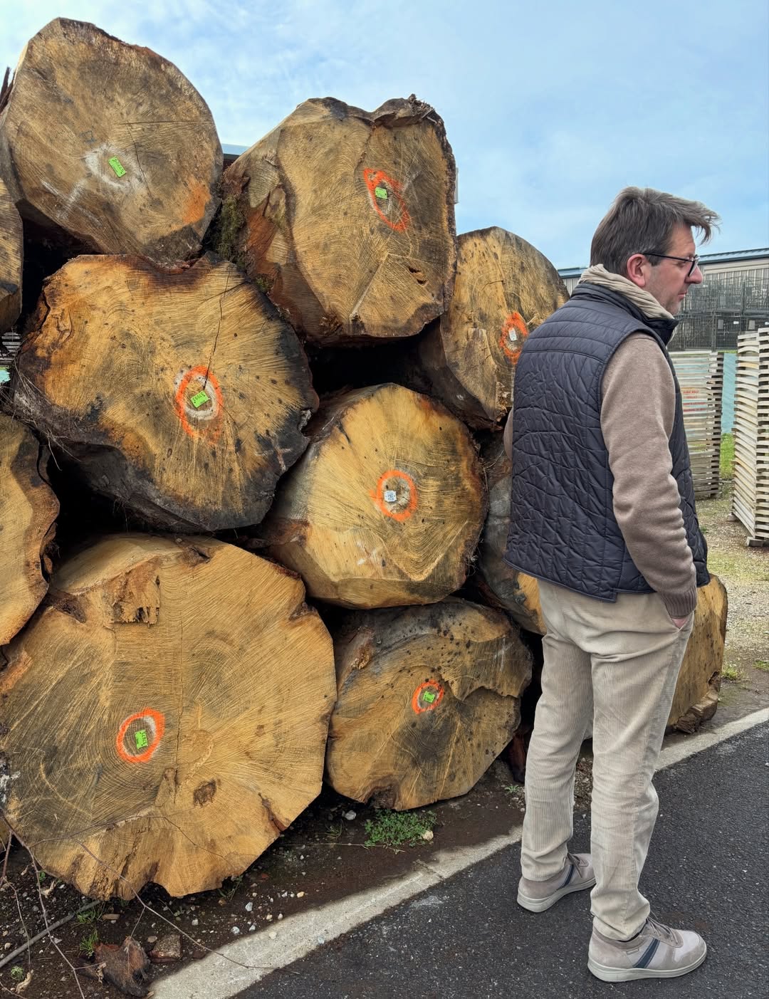 Iedere boom zal zo’n 80 tot 120 jaar zijn voor ‘ie (ze?) wordt gekapt, ‘s winters als er minder sap in het hout zit (dat is #ongewenst ja). Dat geeft genoeg hout voor zo’n twee 225ℓ vaten. Omdat de Franse nerf dichter is maar het hout minder watervast (sic) is, zal het hout langs de nerf worden gespleten – dan kan je direct maar max 25% van de boom gebruiken… Amerikaans eiken wordt gewoon gezaagd = twee keer zo economisch qua opbrengst. Waarna droging aan de lucht wordt gedaan. Dat verzacht het hout beter, in de zin van afbraak van ongewenste chemicaliën en al te veel bittere tannines en verzachting van de vezel (gedreven door de tylose-structuren die de xylem-vezels, waterdoorlatend, blocken). Ovengedroogd hout (van sommige Amerikaanse kuiperijen) haalt het daar toch niet bij. Het weer is genoeg, hoewel in drogere klimaten tot wel 2meter water wordt gesproeid (Chili, Tonelaría Nacional).